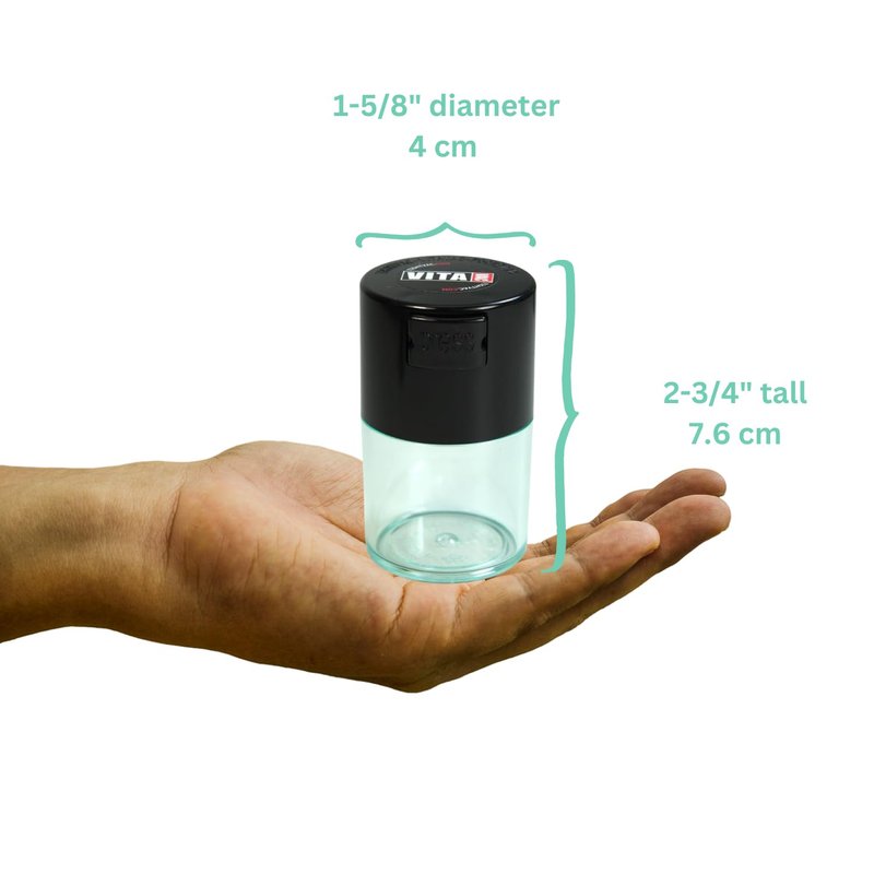 Vitavac - 5g to 20 grams Airtight Multi-Use Vacuum Seal Portable Storage Container for Dry Goods, Food, and Herbs - Black Cap & Clear Body