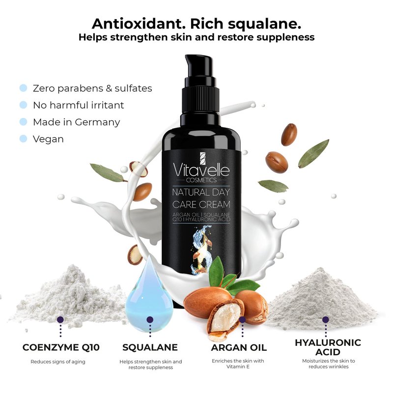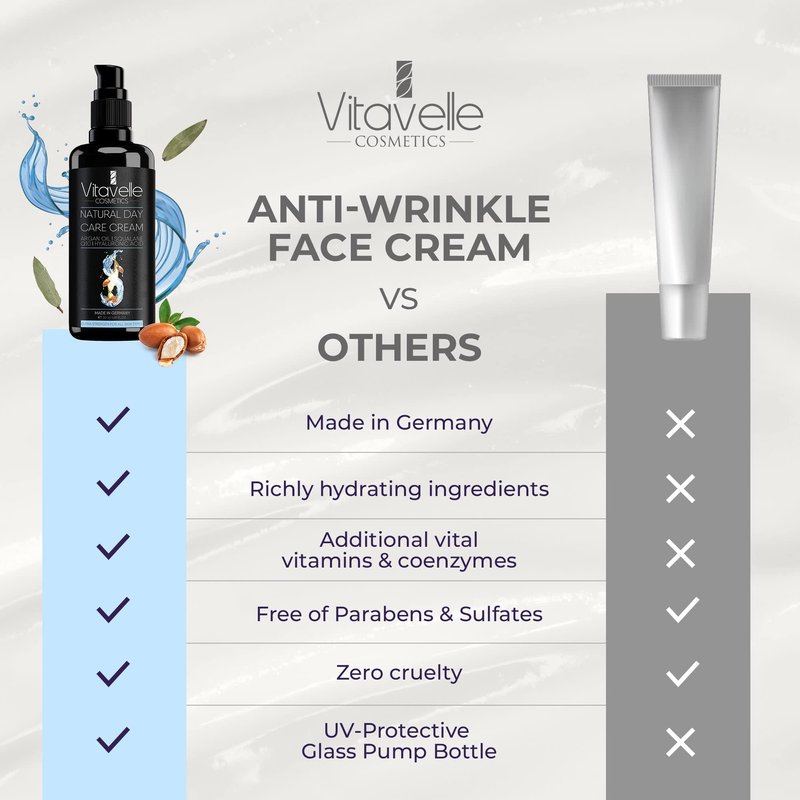 VITAVELLE Anti Aging Day Cream- Day and Night Retinol and Collagen Moisturizer Face Cream with Hyaluronic Acid and Argan Oil, Best Retinol Face Cream for Aging Skin (squalene (50 ml))