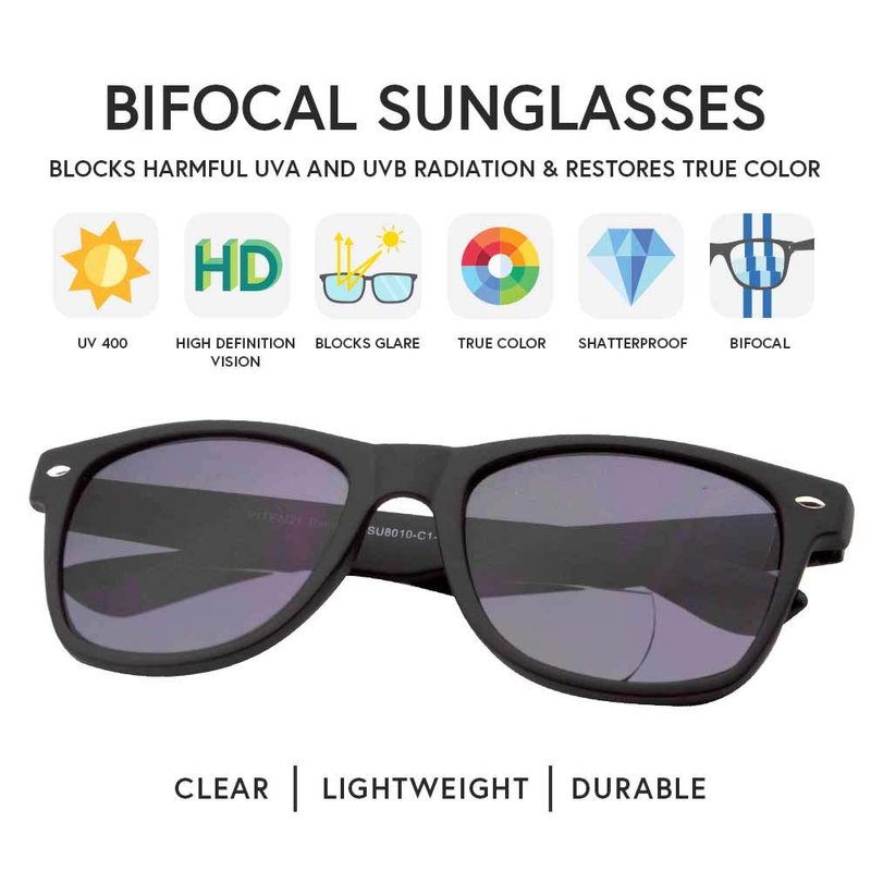 - Nearly Invisible Bifocal Lenses - Regular Sun Glasses on Top with Almost Invisible 2.50 Power at the Bottom Perfect for Outdoor Reading and Distance Viewing.