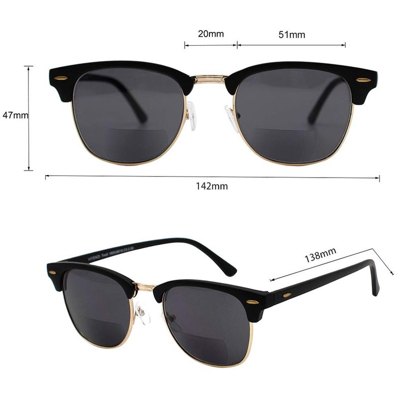 - Nearly Invisible Bifocal Lenses - Regular Sun Glasses on Top with Almost Invisible 1.50 Power at the Bottom Perfect for Outdoor Reading and Distance Viewing.