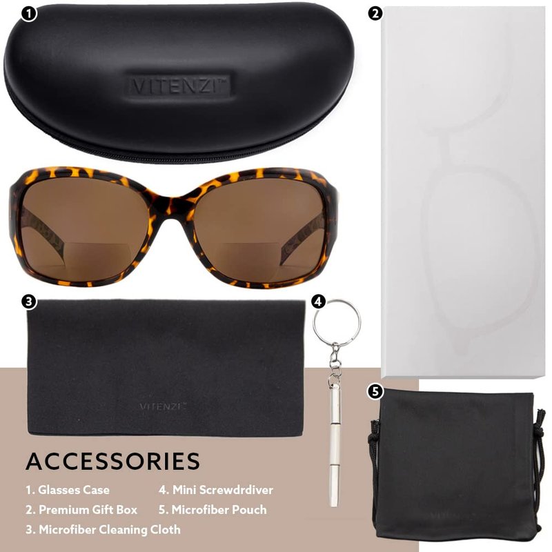 VITENZI Bifocal Sunglasses for Women, Jackie O Reading Tinted Readers, Vittoria in Tortoise 2.00