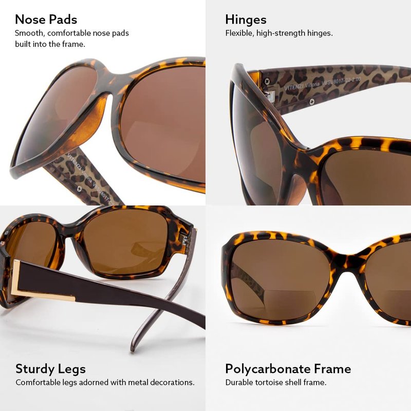 VITENZI Bifocal Sunglasses for Women, Jackie O Reading Tinted Readers, Vittoria in Tortoise 2.25