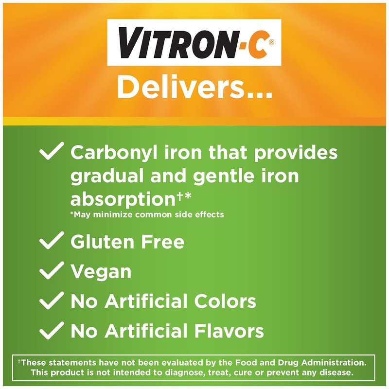 - Contains 2 packs of Vitron-C High Potency Iron Supplement Plus Vitamin C, 60 tablets in each pack