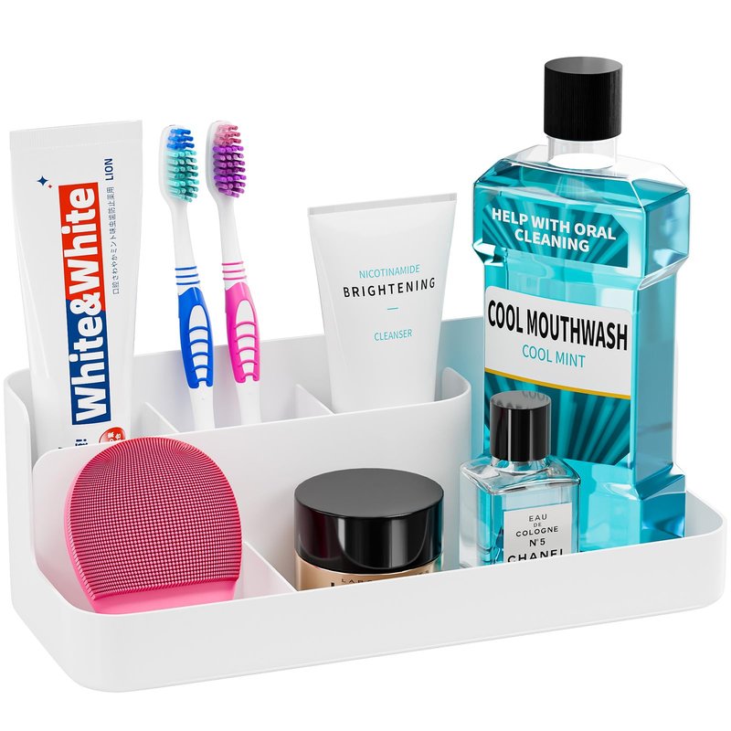 - š”ćPerfect Size CompartmentćThe toothbrush holder is divided by a partition into 5 compartments where you can store a shaver, toothbrush, toothpaste, comb, and other bathroom items, making everything looks organizer.