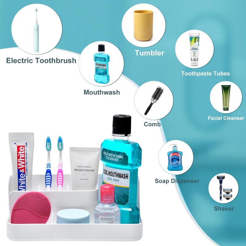 - š”ćThickened Plastic MaterialćThe bathroom countertop organizer is made of plastic, and can adapt to any environment, durability is one of its characteristics, you do not have to worry about replacing the new bathroom organizer.
