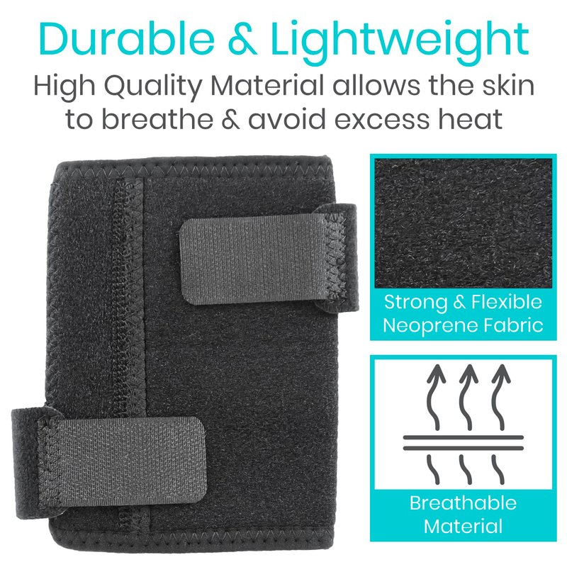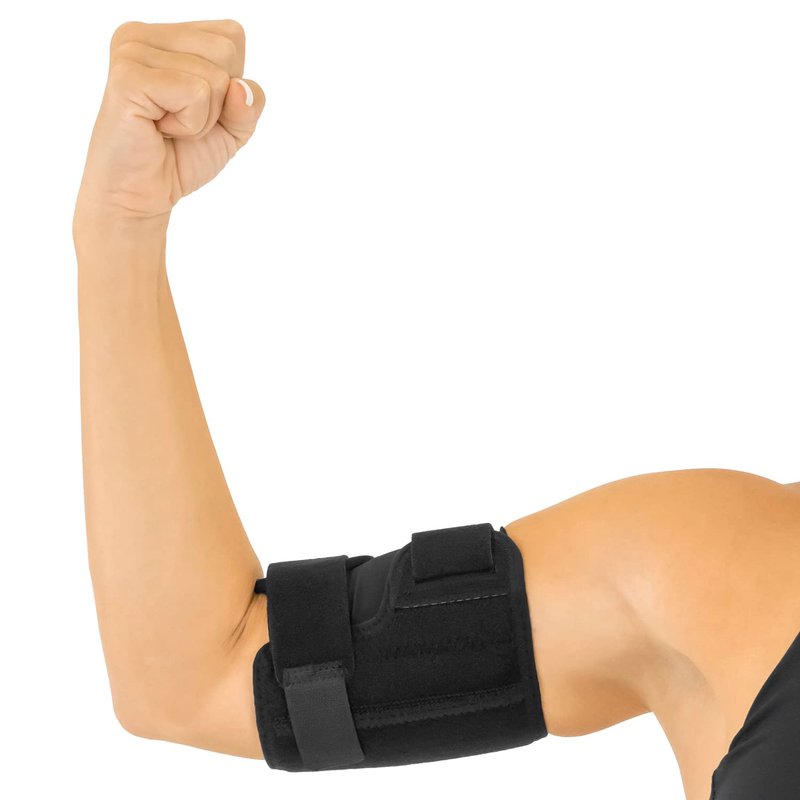 - LIGHTWEIGHT AND BREATHABLE: Made with a latex-free neoprene blend, our bicep brace is perforated for maximum breathability. The upper arm compression strap allows heat and moisture to quickly dissipate so your arm stays cool and dry throughout the day.