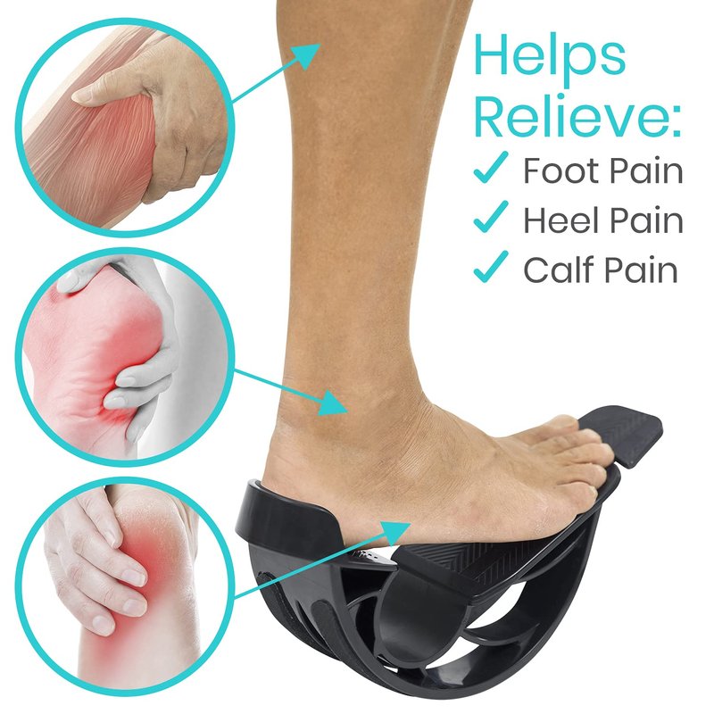 - Patent Design: Safely stretch and increase flexibility in the foot, ankle and calf with the Vive adjustable foot rocker. Ergonomically designed, the foot rocker includes a toe extender that accommodates foot sizes over US men’s size 9. The fluid rocking motion of the calf stretcher gently and evenly stretches the foot and calf to relieve pain, improve circulation and reduce fatigue, injury and muscle strain.