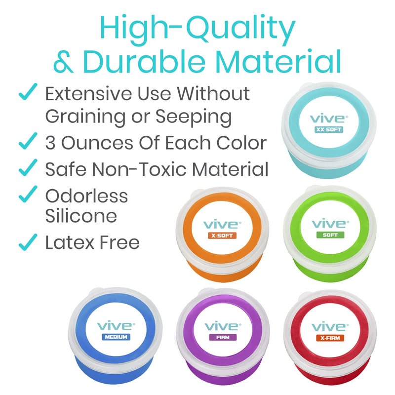 - 60 DAY VIVE GUARANTEE: Backed by our 60-day unconditional guarantee, you can trust in your purchase of our stress putty for adults and hand putty for physical therapy, making it a risk-free investment in your therapeutic care.