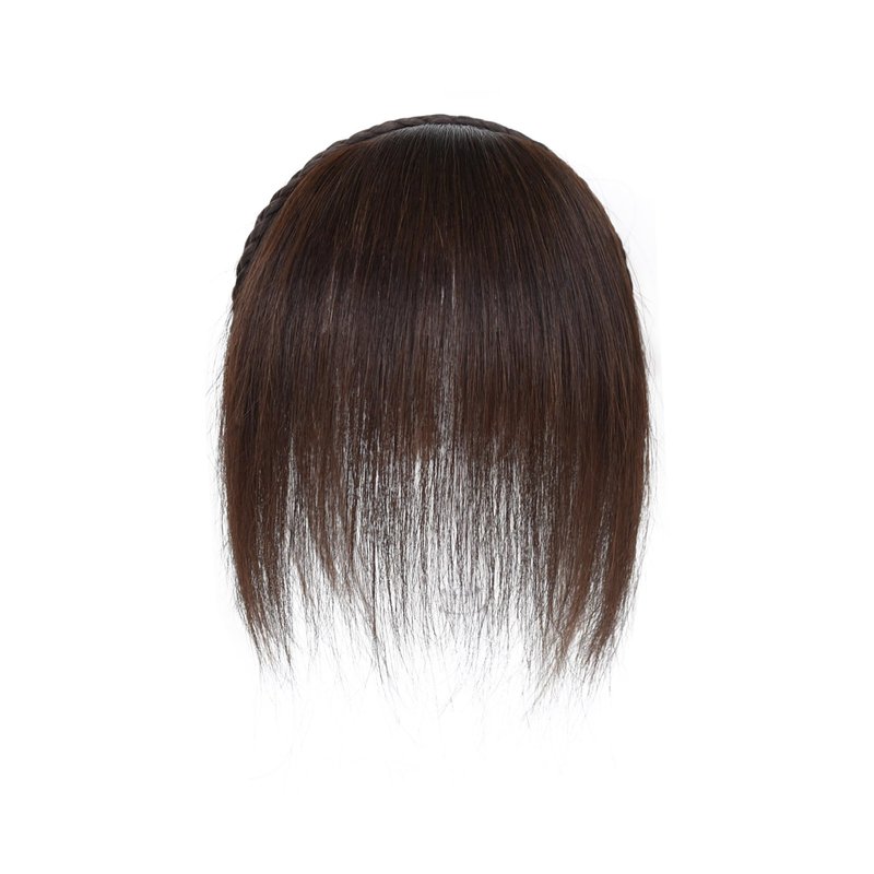 viviaBella Women 10" Twist Braid Headband Straight Hairpieces Human Hair Clip In Topper Hair Extension With Bangs Invisible Natural (Dark Brown)