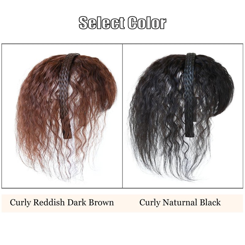 viviaBella Women 10" Twist Braid Headband Straight Hairpieces Human Hair Clip In Topper Hair Extensions With Bangs Natural Black (Curly Natural Black)