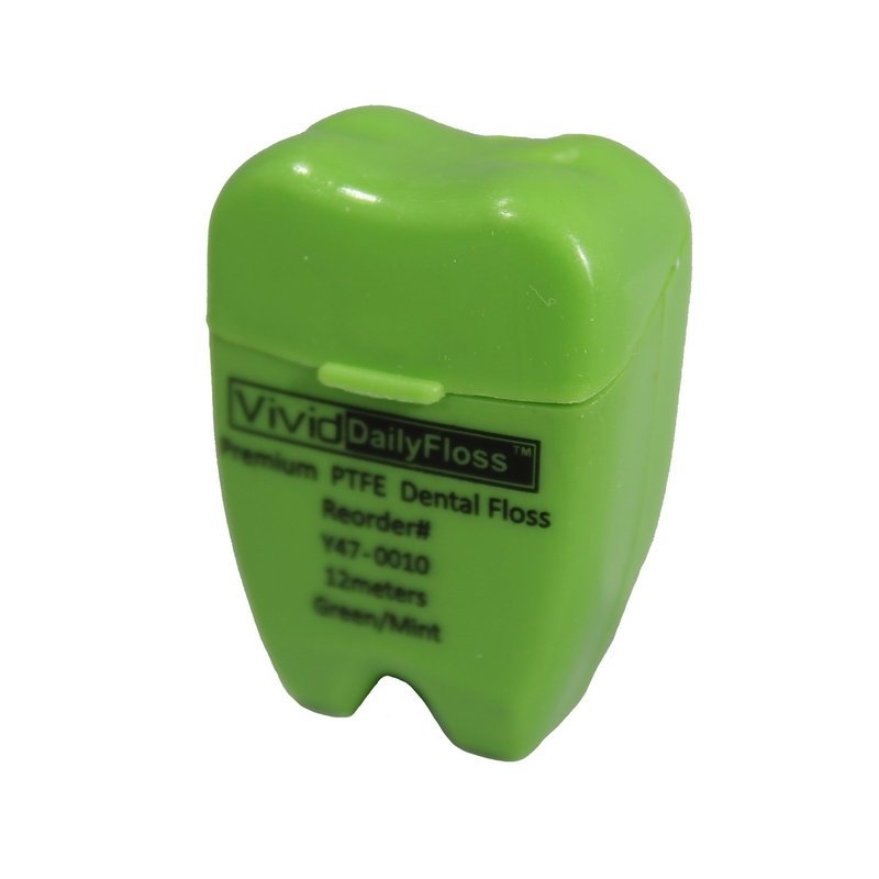 Vivid Premium Flavored PTFE Dental Floss With Color Coded Tooth Shape Case – 12 Meters – Pack of 72 (Mint, PTFE Floss)