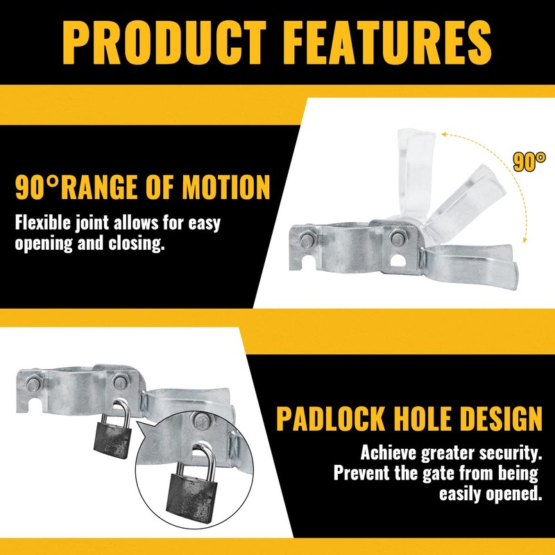 - 【90° RANGE OF MOTION】Chain link gate latches for metal gates. Flexible joint allows your gate for easy opening and closing.