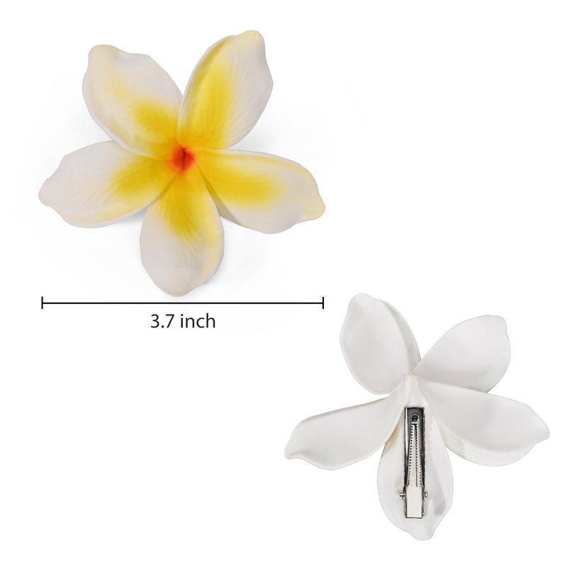Vividsun Hawaiian Flower Hair Clips White Plumeria Flower Foam Hair Clip 3.7 Inch Artificial Flower Clip for Wedding Party Beach (White/3pcs)