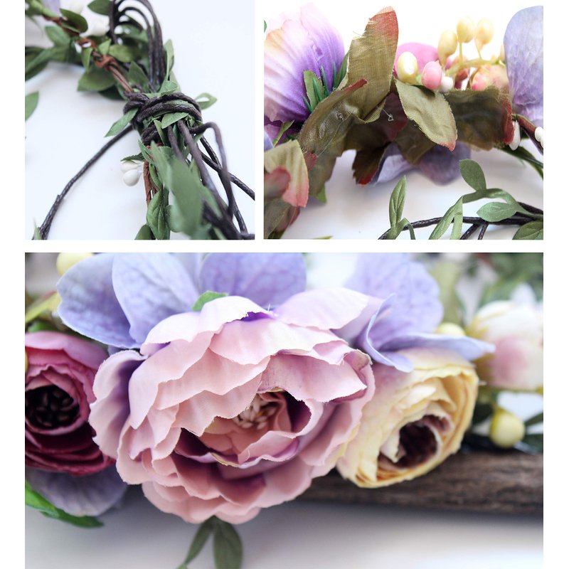 Vivivalue Flower Wreath Crown Boho Flower Headband Hair Garland Floral Headpiece Halo with Ribbon Wedding Party Festival Photos Purple