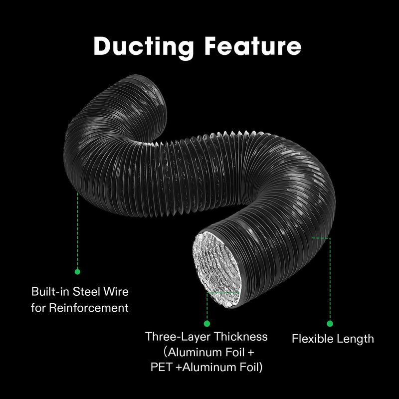 - Multi-Layer Protection: It features 3-layer protection, making it more durable and resistant to leaks than single-layer ones; The internal and outer layers are made of heavy-duty aluminum foil that is fire/flame-retardant; Its middle layer adopts PET thermoplastic that protects the ducting from cuts and tears, all while stopping leakage