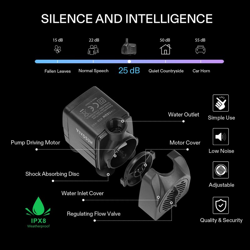 - Wide Range of Applications: This high performance energy-efficient pump works great in ponds, fountains, waterfalls, hydroponic systems, and irrigation systems and so on; Working Temperature: 39℉ to 95℉