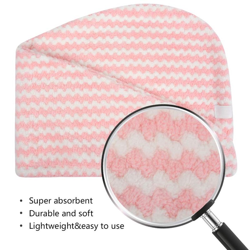 - Unique design - There is a unique elastic band to secure the hair towel turban wrap, so it doesn't sliding down, no matter how long or short your hair is, more or less. It means that you can Dressing, make-up, doing housework, checking mail, all while drying hair