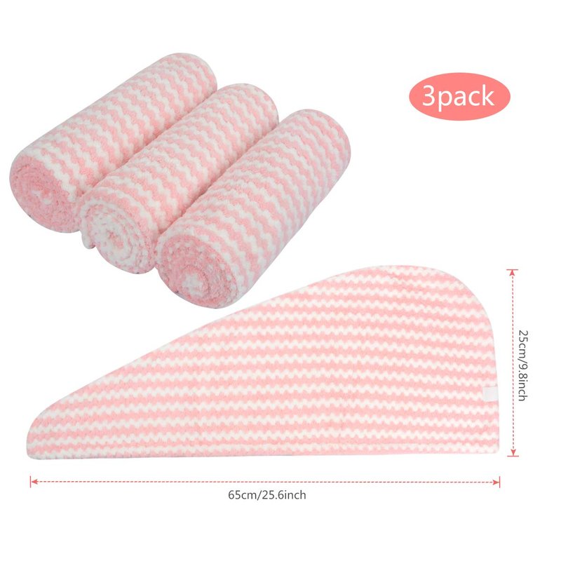 - 100% Microfiber, high quality hair towel, hair dry turban, head turban, extremely soft to the touch, super absorbent and fast drying. 3 packs, essential in the home.