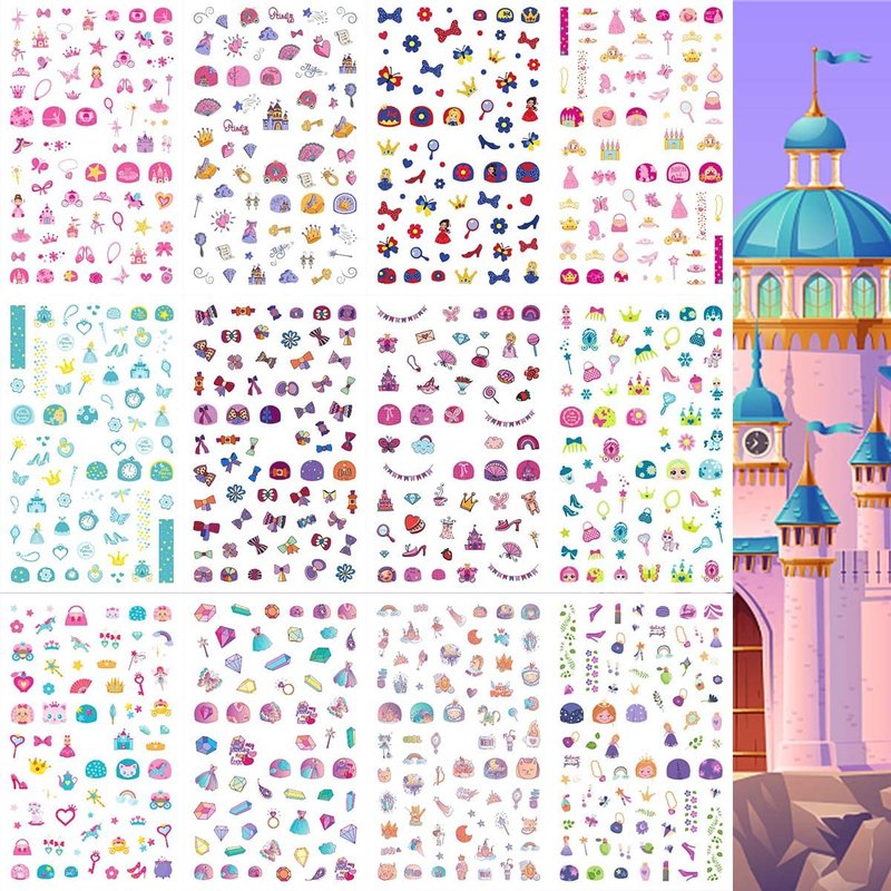 VIWIEU Small Kids Nail Stickers Princess Nails Decals for Little Girls 12 Sheets, 600+ Cute Toddler Tiny Fingernail Wraps Birthday Party Favors, Easter Basket Filler, Christmas Holiday Gift