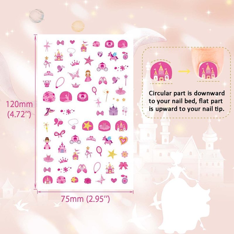 - Princess Party Hit - These adorable princess nail stickers for kids are small enough for little fingers, great size for toddler manicure. Plenty of princess themed nail stickers to choose from. It will make a big hit on kids' princess bday party.