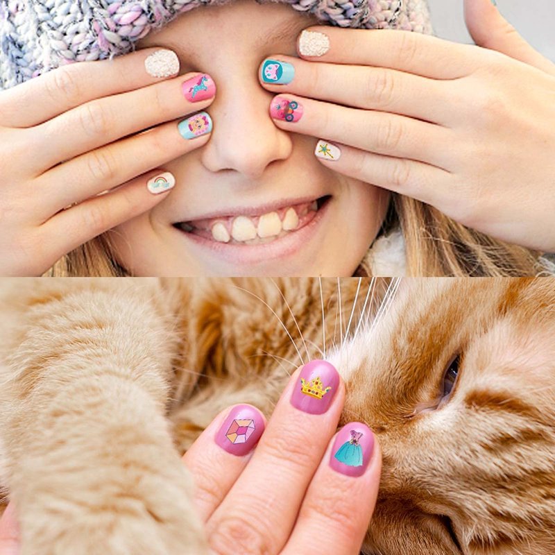- Great Variety - These cute kids nail decals come with over 600+ colorful designs, featuring as princess, crown, diamond, flower, heart, dress, magic wand, mirror, lollipop, castle, ring, necklace, bowknot, high heeled shoes, star, moon, kitties and more. Easily mix and combine them to DIY nail art at home.