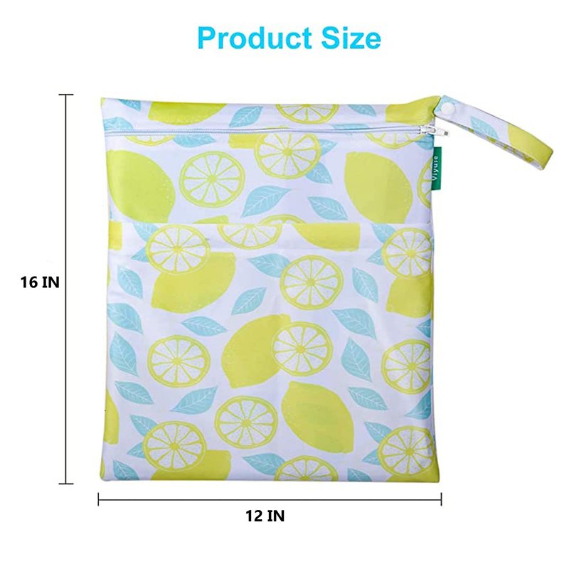 - Waterproof -Viyuse wet/dry bag are made from waterproof 100% polyester,The outer layer is printed flat cloth, and the inner layer is attached with PUL waterproof membrane.wet bags lemon for cloth diapers is very cute.