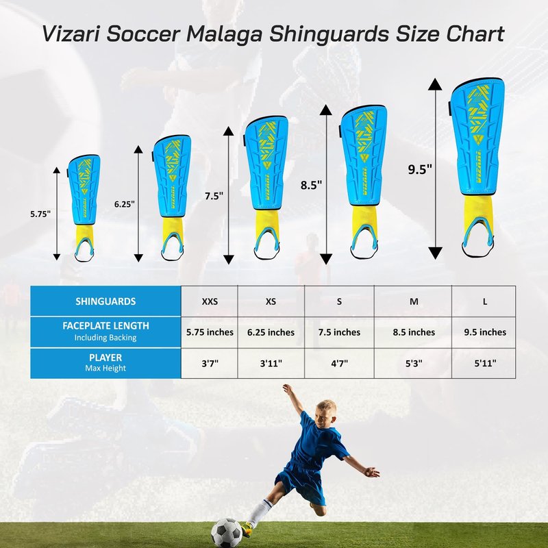 Vizari Malaga Soccer Shin Guards for Kids | Youth Soccer Gear for Boys Girls | Protective Soccer Equipment | Adjustable Straps