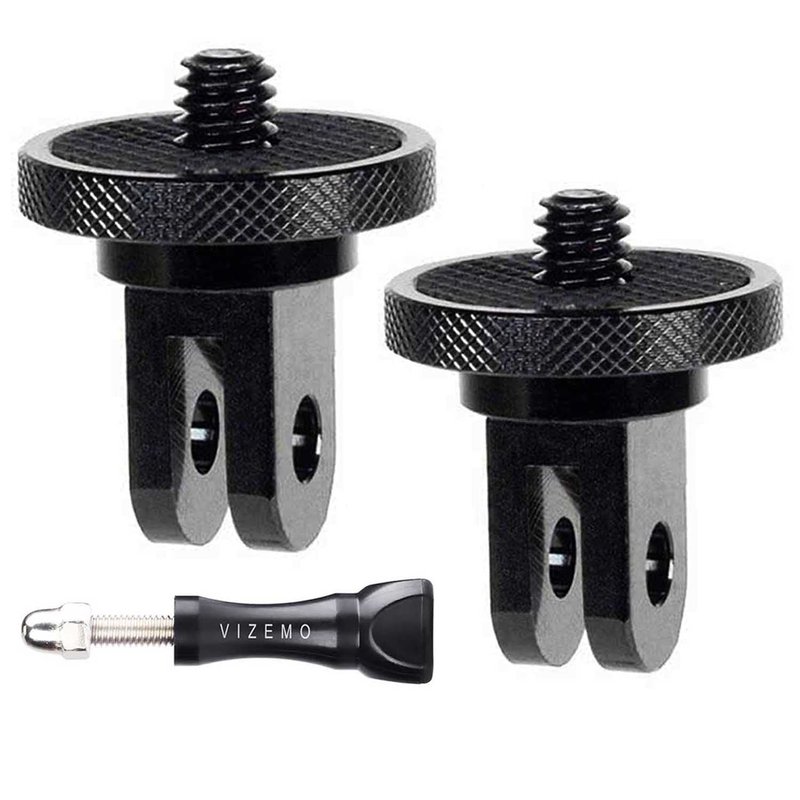 - 【Package Including】2 * 1/4'' Camera Mount Adapters, Works with all GoPro Hero3, Hero4, Hero5, Hero6, Hero7,Hero8,Hero9,Hero10,Hero11 mounting ecosystems,Insta 360,Sony,Xiaomi, Sjcam Action Cameras and Other Standard 1/4 Accessories,+ 1* VIZEMO plastic thumbscrew