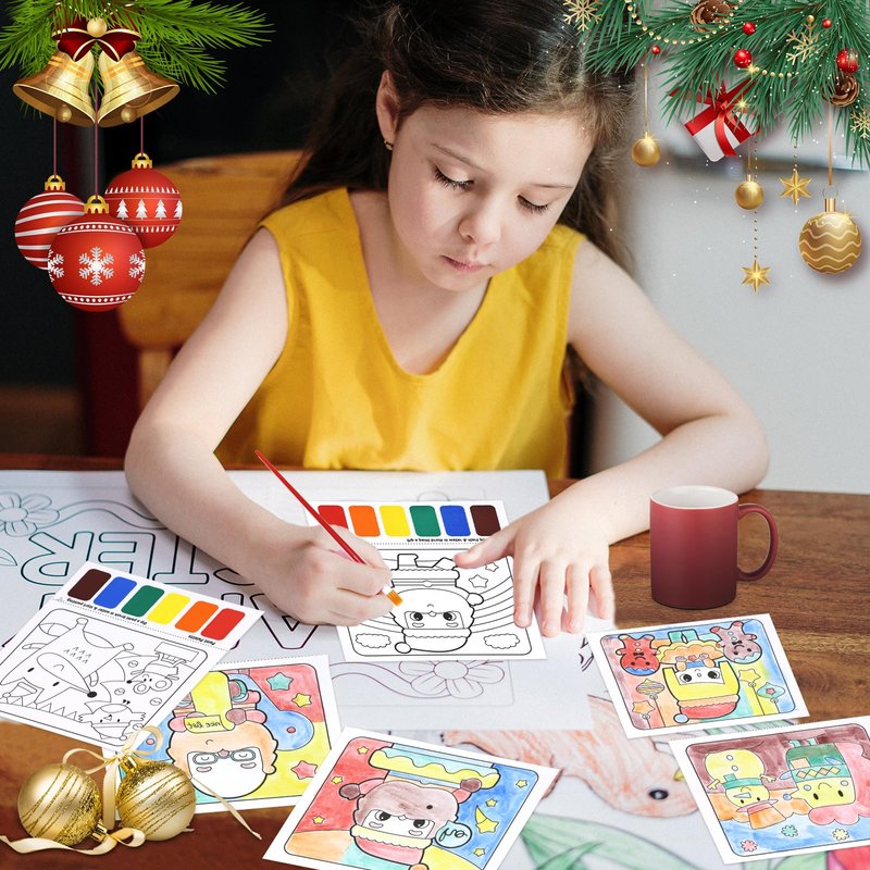- Awesome Holiday Gift for Kids: The watercolor activity books is perfect for Christmas party favor, kindergarten classroom projects, holiday supplies. It is an ideal gifts for kids in 3 4 5 6 7 8 on Christmas, Halloween, Easter, and Children's Day.