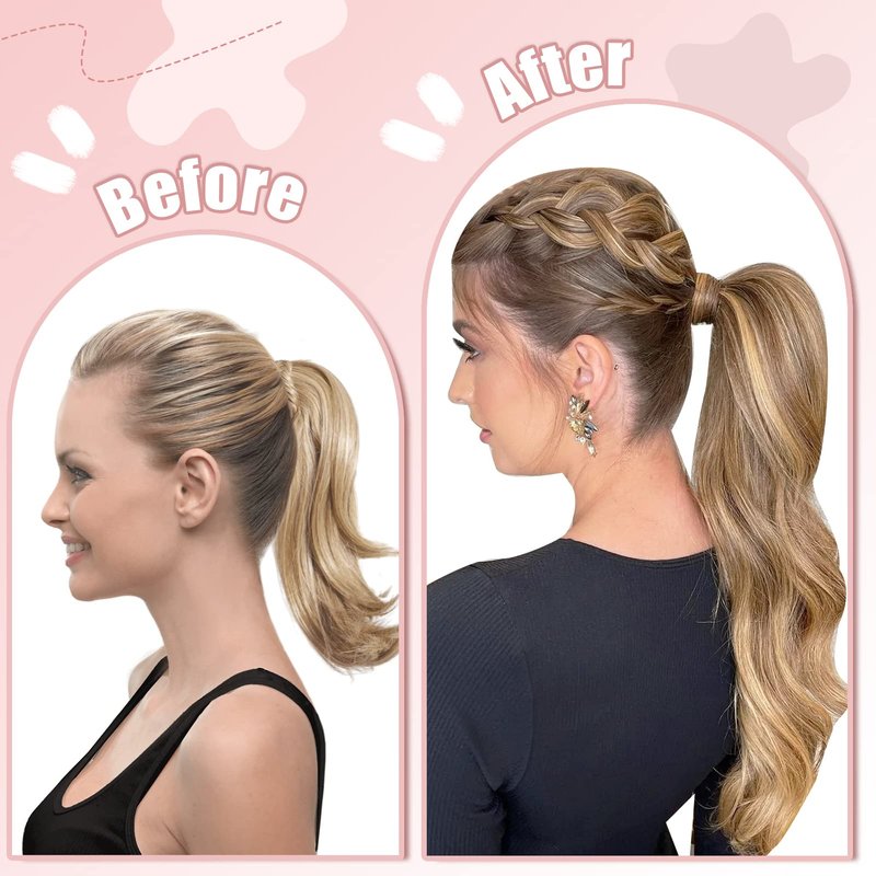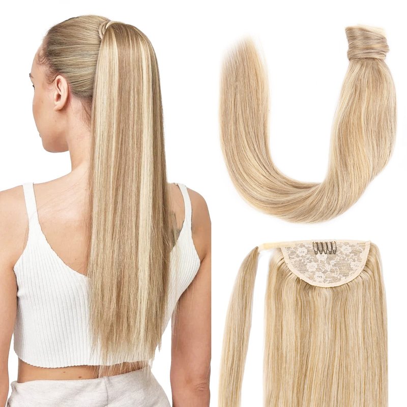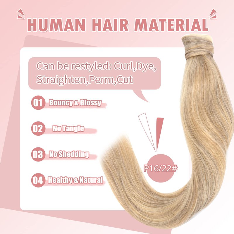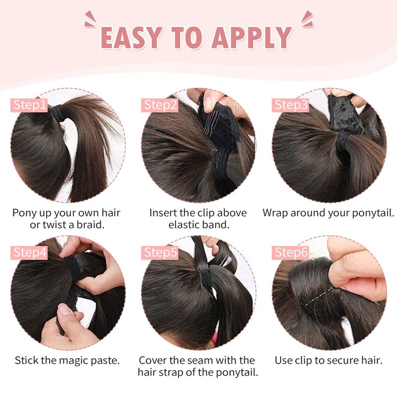 - ❤【PROFESSIONAL DESIGN】This pony tails extensions human hair is designed with hair net and clip that will enable the fake ponytail to stay in place well and reduce your worry about falling off. Wrap around and magic paste designs of the hair extensions ponytail make it easier to wear and take off by yourself, you can instantly increase the length and volume of your pony tail.