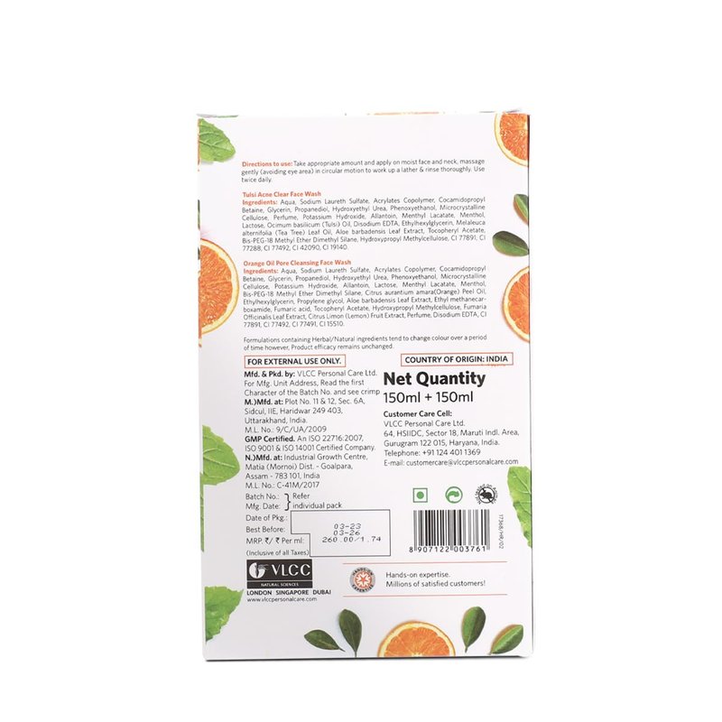 - Vlcc Combo kit of Orange Oil Face Wash (150ml) & Tulsi Face Wash (150ml) (Pack of 2)
