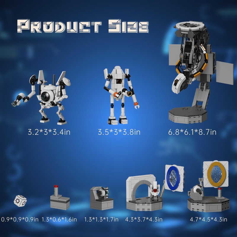 - 【Portal Building Blocks Set】Our building toys are inspired by the popular game. This set includes the game's robot models GLaDOS, Atlas and P-body, Wheatley, as well as orange and blue portals and portal guns. If you or your family are fans of this game, don't miss out on these cute building block toys