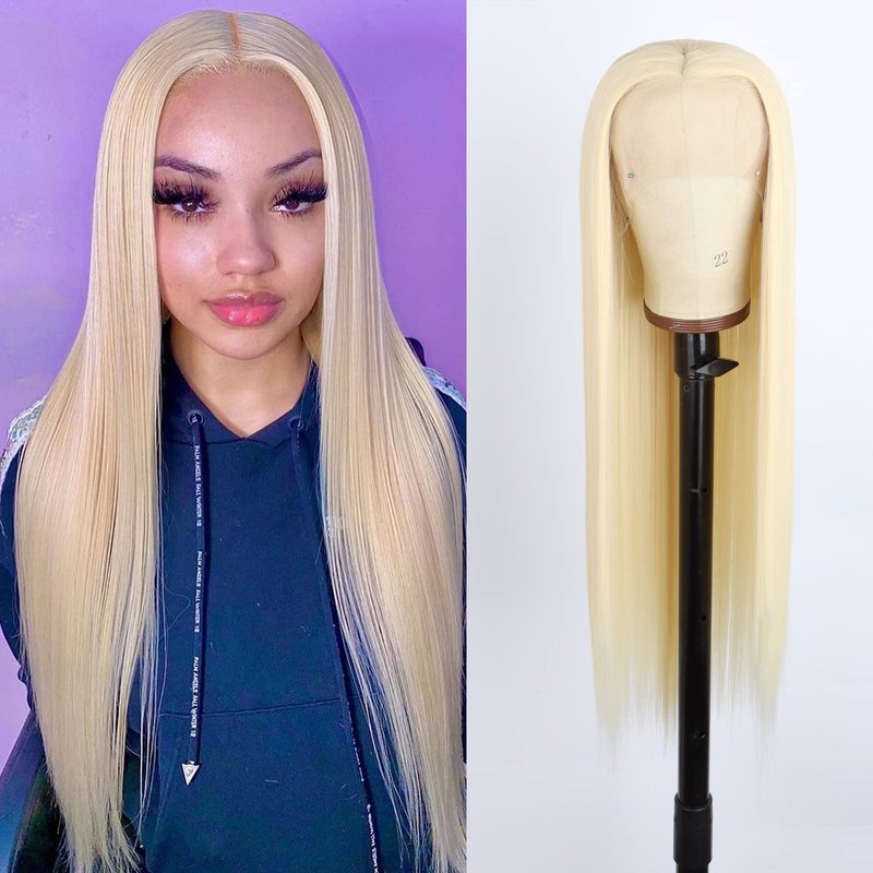 V'NICE 613 Blonde Lace Front Wigs 13×2.5 Long Straight Synthetic Glueless Heat Resistant Fiber Hair Synthetic Lace Front Wig for Fashion Women Cosplay Daily Wear