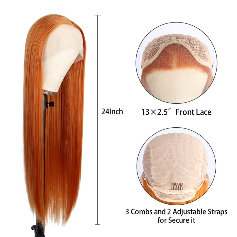 V'NICE Orange Lace Front Wig 13×2.5 Long Straight Glueless Heat Resistant Fiber Hair Synthetic Lace Front Wigs for Fashion Women Cosplay Daily Wear