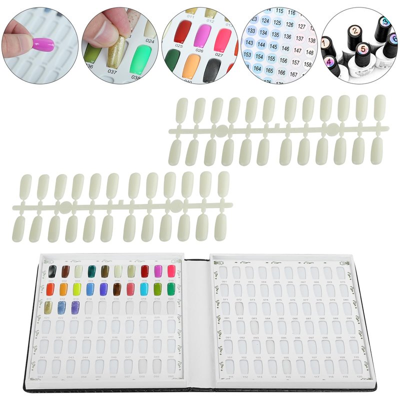Vnjaoi 120 colors swatches book format makes it easy to organize and access your nail polish collection, ensuring that you never waste time searching for the perfect color.Whether you're a professional nail technician looking to impress your clients or a nail student honing your skills, our nail polish color swatches book is an essential addition to your toolkit. It allows you to create beautiful nail swatches, providing a visual reference for your clients and helping you perfect your nail designs.The durable plastic nail swatches sticks ensure that your colors stay true and vibrant, even after multiple uses.