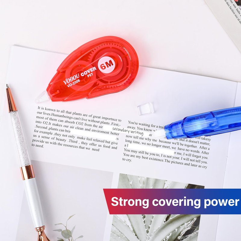Vobou Whiteout Correction Tape, Easy To Use Applicator for Instant Corrections Correct Wrong Writing At Any Time, For school, Office (Red and Blue, 12pack, 6M/256" x 0.2")