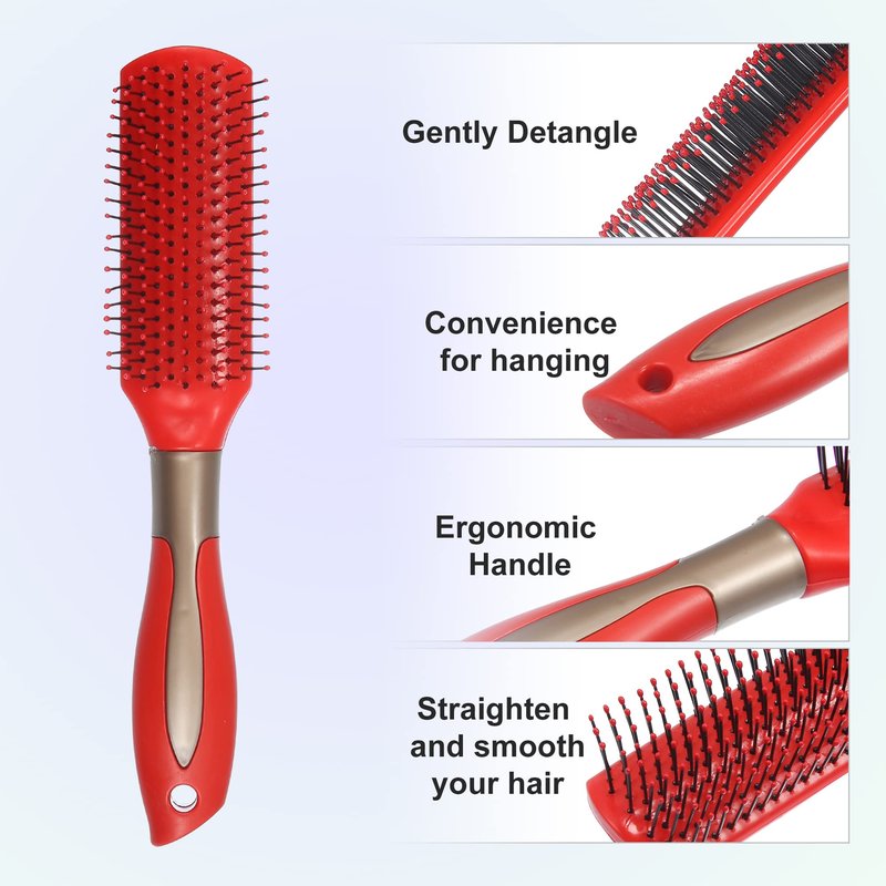 VOCOSTE 1 Pcs Hair Brush, Detangling Brush for Women and Men, Hair Brush for Straight, Curly, Long, Short, Dry Hair, Red, Plastic