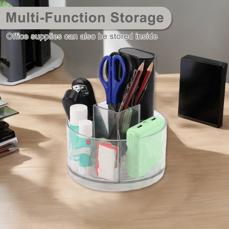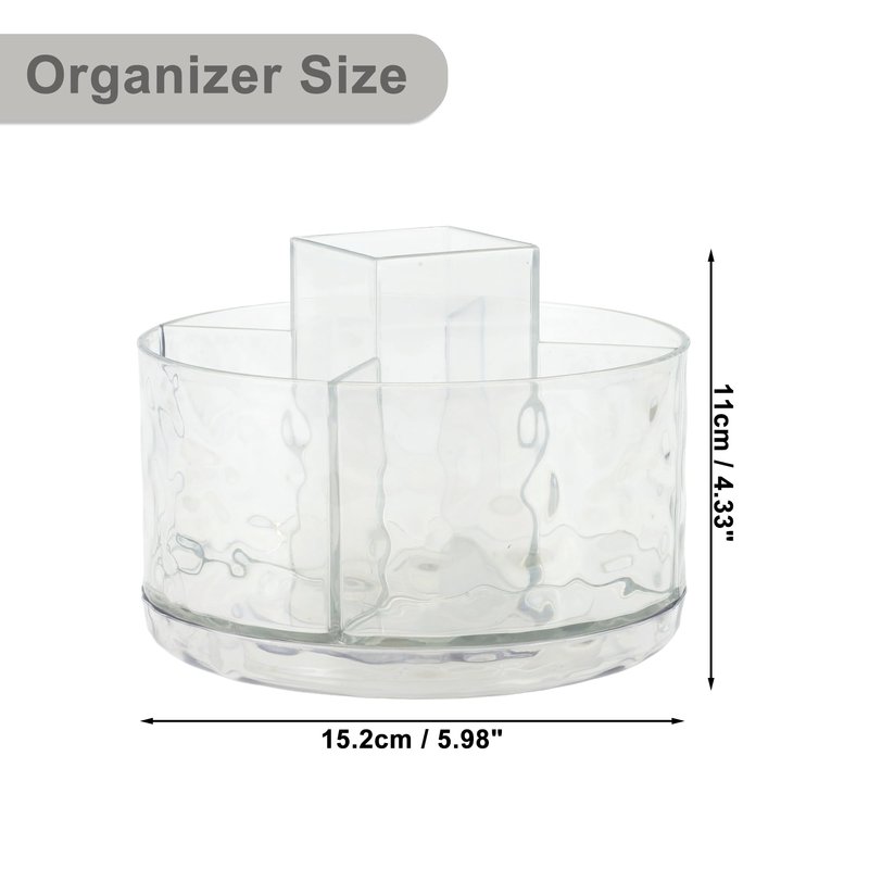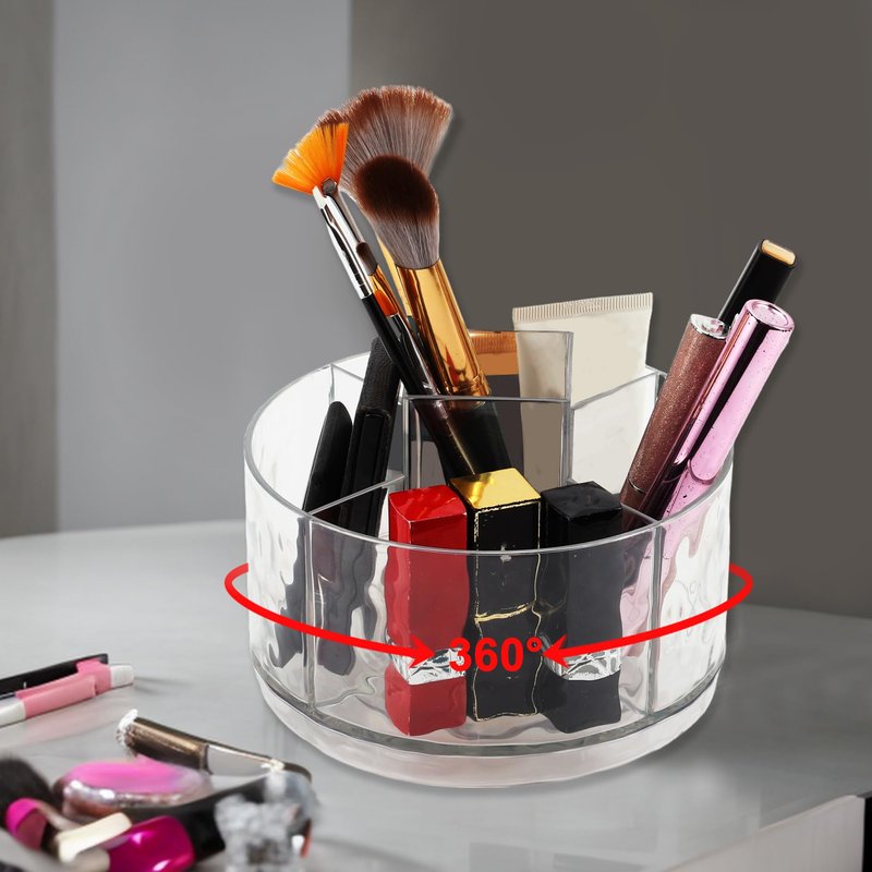 - 360 Degree Rotation Organizer: Reinforced steady base rotates smoothly, enabling easy access to all of your makeup products. Hold at least 5 makeup brushes, and other accessories including mascara, eyeliner, nail polish, and more