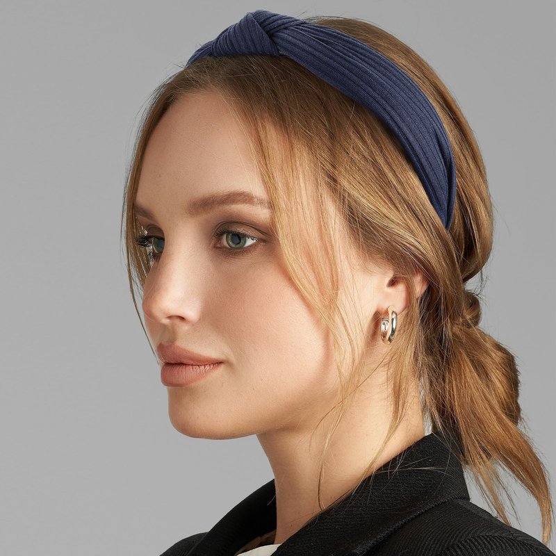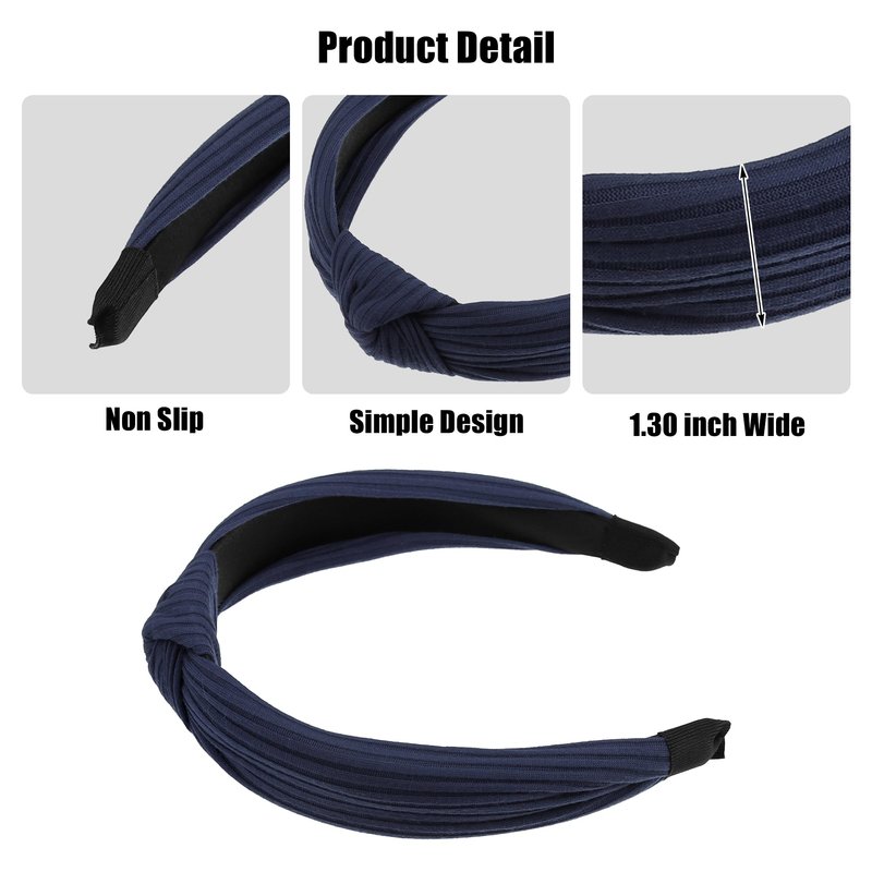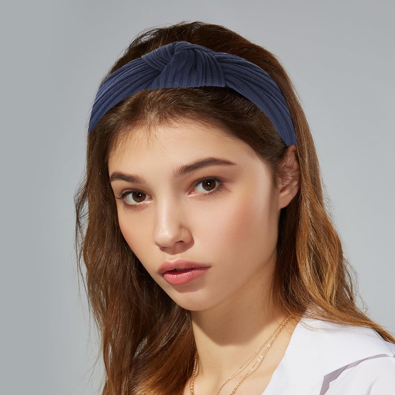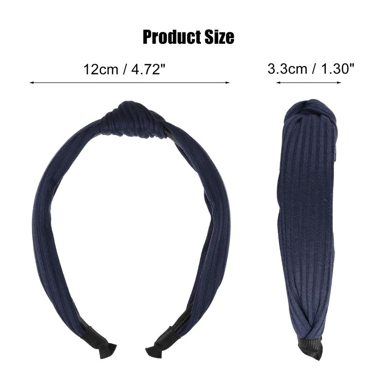 VOCOSTE Textured Cotton Knot Headband, Soft Hairband for Women, Navy Blue, 1.3 Inch Wide