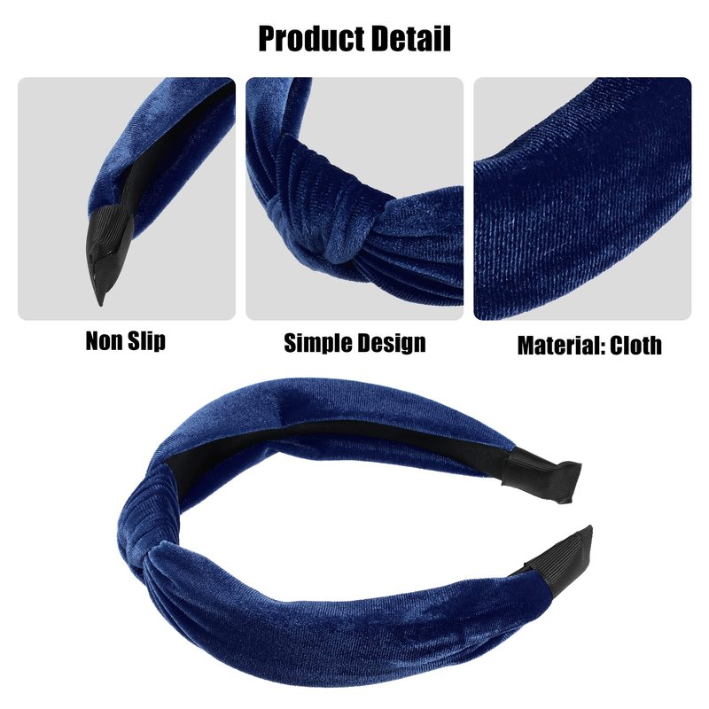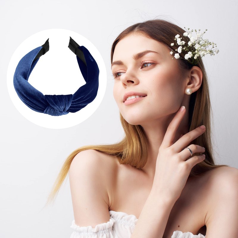 VOCOSTE Velvet Knotted Headbands, Hairband for Women, Navy Blue, 1.2 Inch Wide