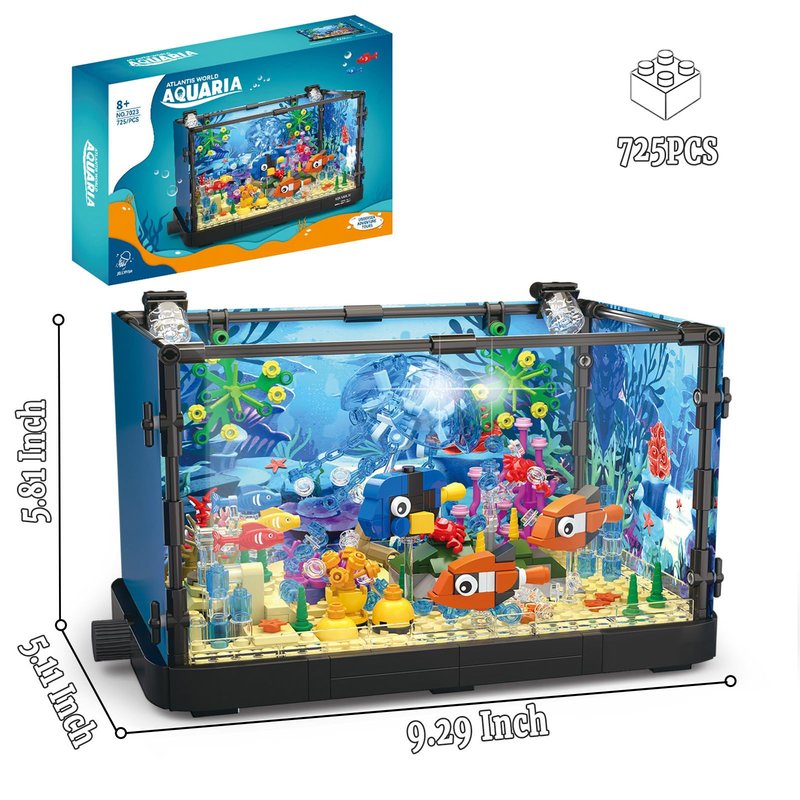 Vocrev Fish Tank Building Block Set for Adults and Kids Lighting Aquarium Building Block Toys for Boys Girls Age 8-14 Including Ocean Jellyfish, Fish, Corals, Crab 725pcs