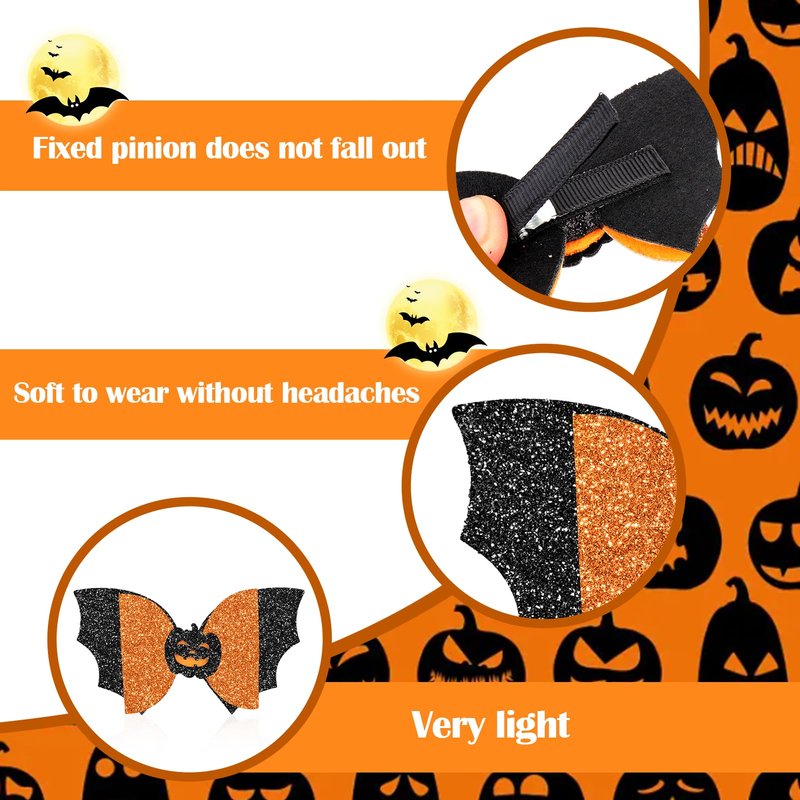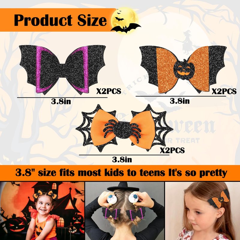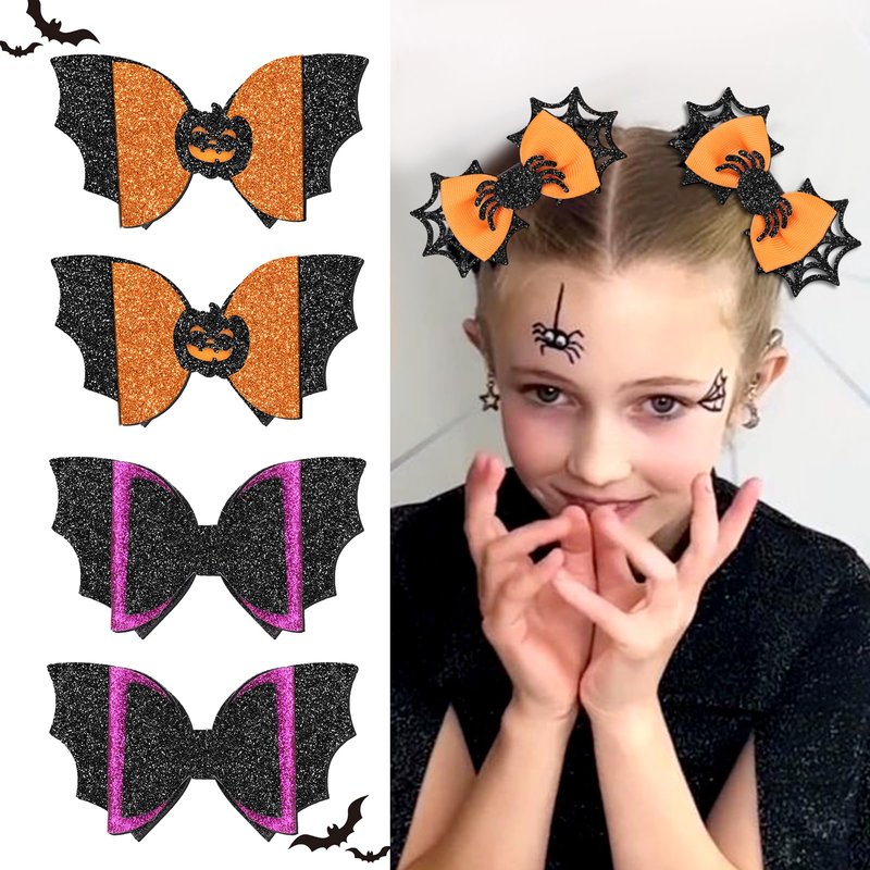 - LIGHT UP THE HALLOWEEN VIBE: This set of hair clips features all the classic elements of Halloween: mysterious spiders, joyful pumpkin lights, and spooky bats, each pair is covered with delicate glitter that glows under the light, making you the center of attention at your party or event. Compared to single-design hair clips, our set is more complete with a variety of festive fun, making your holiday look more lively and interesting.