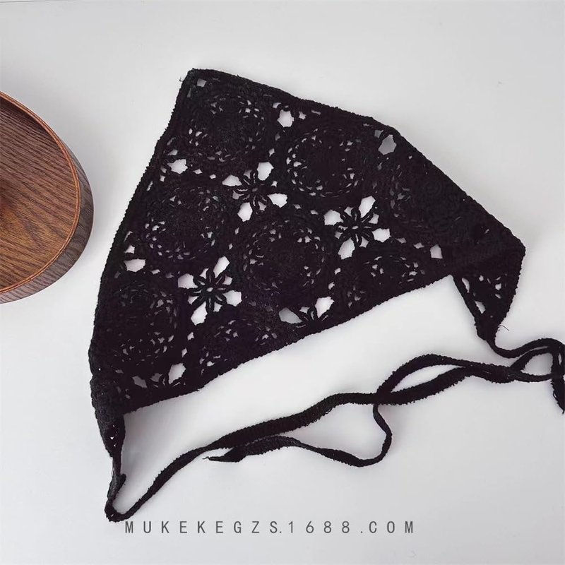 The open knit design features a charming staggered floral pattern, adding a touch of whimsy to your look. Wear it on your head, weave your hair through the straps, and tie it at the back of your neck for a chic and effortless vibe.