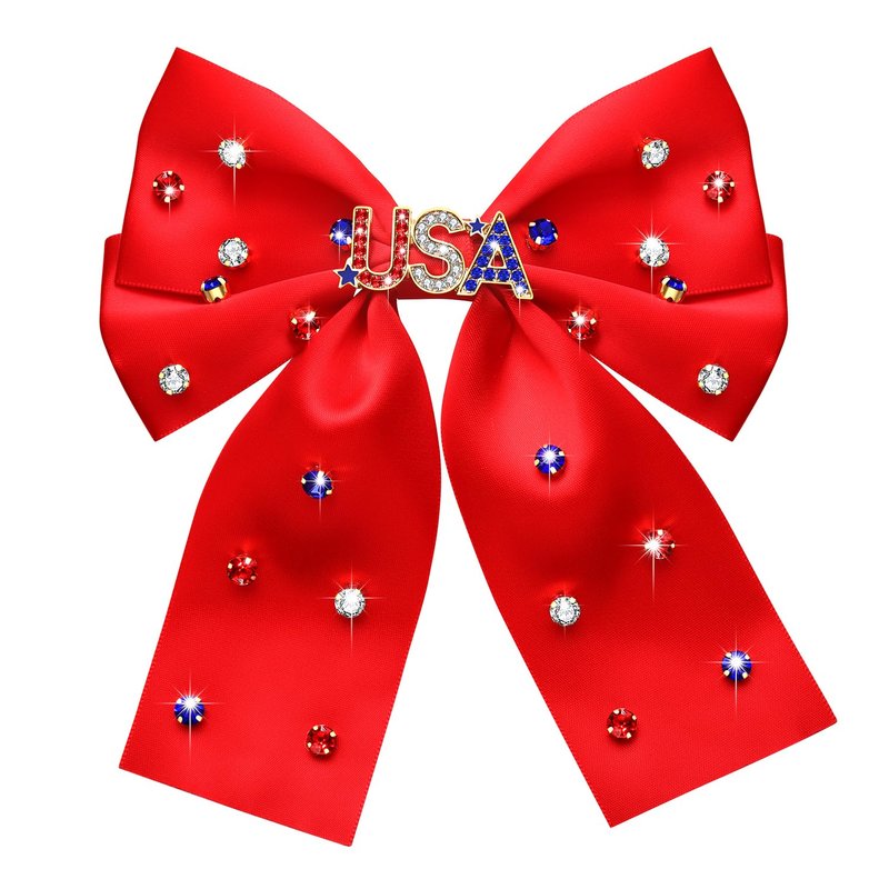 - Celebrate your patriotism with this large and eye-catching 4th of july hair bows for women,these 4th of july accessories features red silky satin in classic bowknot design adorned with a pattern of USA and sparkling red white and blue crystal rhinestons,back attached with metal clip that stay in place all day long.this american flag hair bow clips perfect for any occasion where you want to show your love for America,the Best for 4th of July, Flag Day, Independence Day