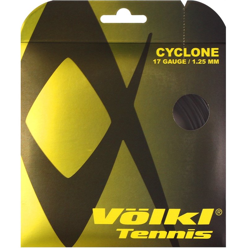 - Offering incredible spin to go along with surprising playability, Volkl Cyclone features a highly geometric gear shape, which combines with co-polyester construction.