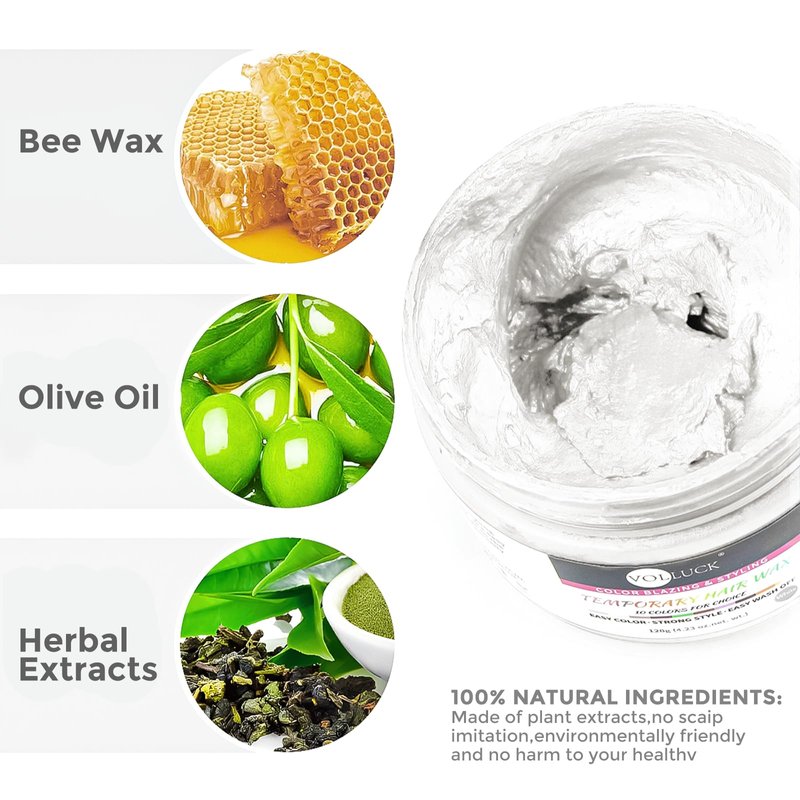 - TEMPORARY HAIR DYE WAX: It’s kind of messy and clumpy, but easy to wash out completely with water. It's like any other hair gel which won’t harm your hair, but a good holding effects may cause to a hair shape change as you prefer.