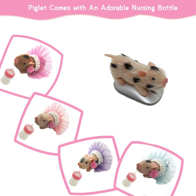 - 【Miniature Piglet】5 Inches(13 cm) from head to hip. weight: 6.1 oz. The painted piglet's mouth is opened and looks like a smile for you, very healing. You can pretend to feed it with the cute nursing bottle we offered. The dressed piglet is so beautiful and adorable