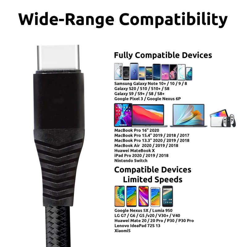 - ⚡Verified Full Braided Quick Speed FLAT COMPACT 3t/6ft/10ft USB-C to USB-C cable is full Compatible with Android Windows/PC/Tablet USB Reversible Type-C cable!