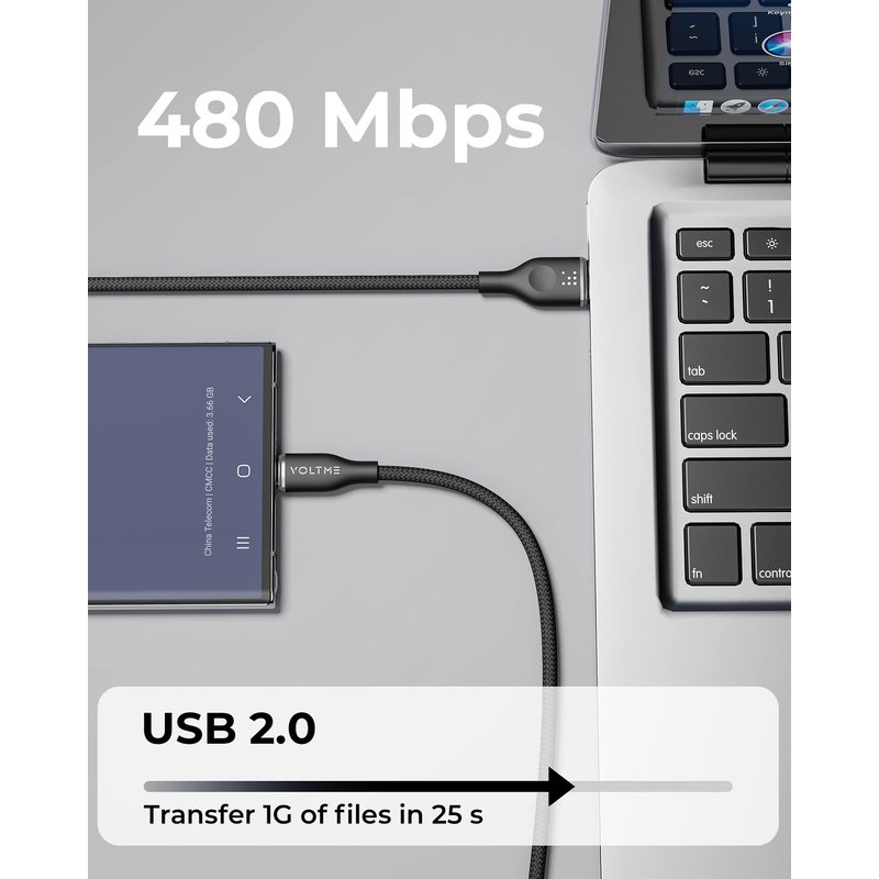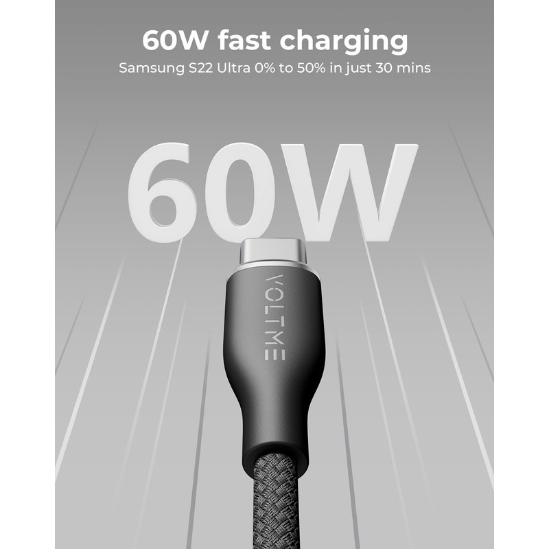 - 60W PD Fast-Charging: VOLTME USB-C Cable supports USB 2.0 and delivers up to 60W of power to USB-C devices. When using the VOLTME USB-C to A Cable or an A-port wall charger, it charges normally, but fast charging is not supported. For the best fast-charging experience, use the original C-port wall charger and a USB-C to USB-C cable.