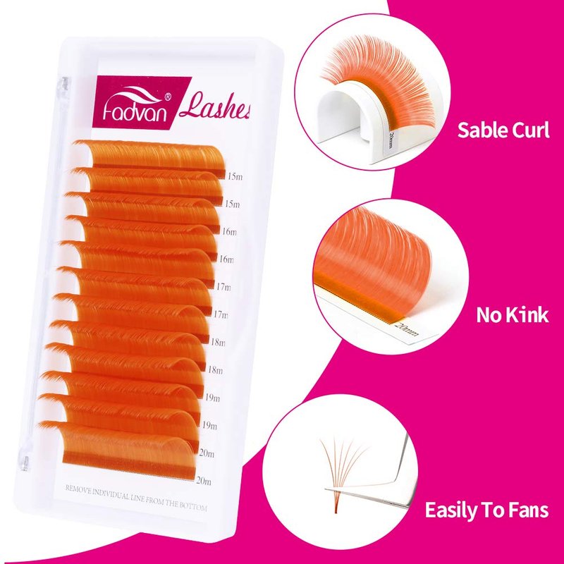 Volume Lash Extensions C Curl 0.07 Mixed Tray 15-20mm Color Lashes Extensions Orange Eyelash Extensions Easy Fan 3D-10D Rapid Blooming Lashes by FADVAN (Orange-C, 15-20mm)